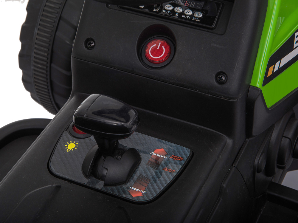 Λειτουργία ελέγχου από το παιδί χειροκίνητα (manual) με γκάζι στο πόδι και λεβιέ ταχυτήτων στο ταμπλό με επιλογή κίνησης εμπρός και πίσω.
