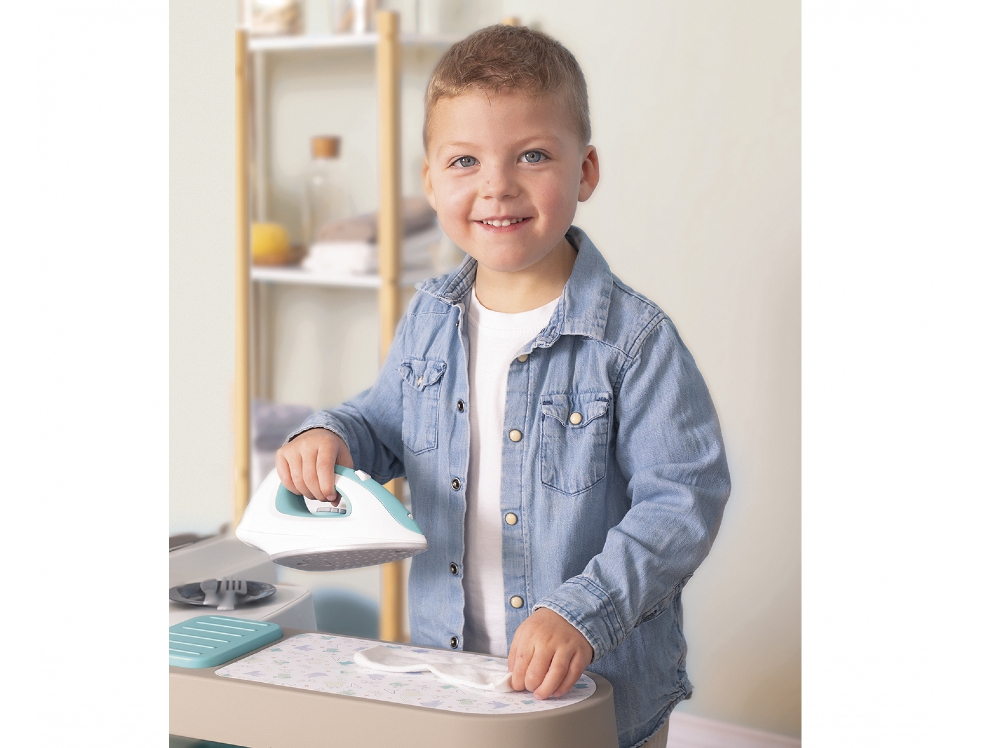 Τα παιδιά σας θα βρουν επίσης μια Απλώστρα ρούχων, ένα καλάθι με δύο λαβές και μια σιδερώστρα.