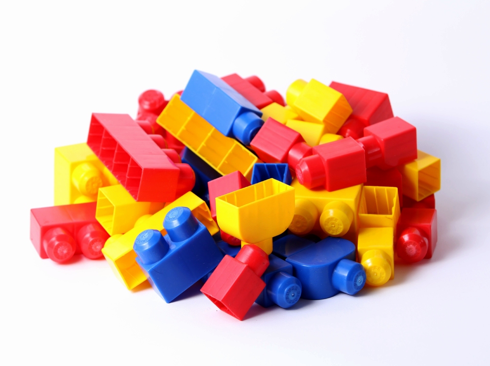 Πλαστικά τουβλάκια κατασκευών Super Bloks σε unisex χρώματα (κόκκινο – μπλε – κίτρινο).