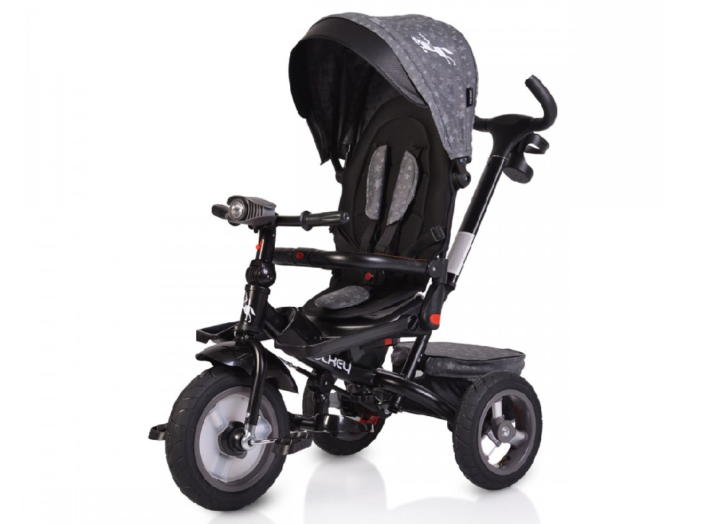 Τρικυκλο ποδήλατο με φουσκωτούς τροχούς και μουσική, εξοπλισμένο με 2 υποπόδια, το ένα για μικρότερα παιδιά και το πτυσσόμενο στήριγμα ποδιών για μεγαλύτερα παιδιά. Διαθέτει μπροστινή μαλακή μπάρα για μεγαλύτερη ασφάλεια και ρυθμιζόμενη λαβή σε διάφορες θέσεις ύψους. Το τιμόνι μπορεί επίσης να ρυθμιστεί σε διάφορες θέσεις ύψους.