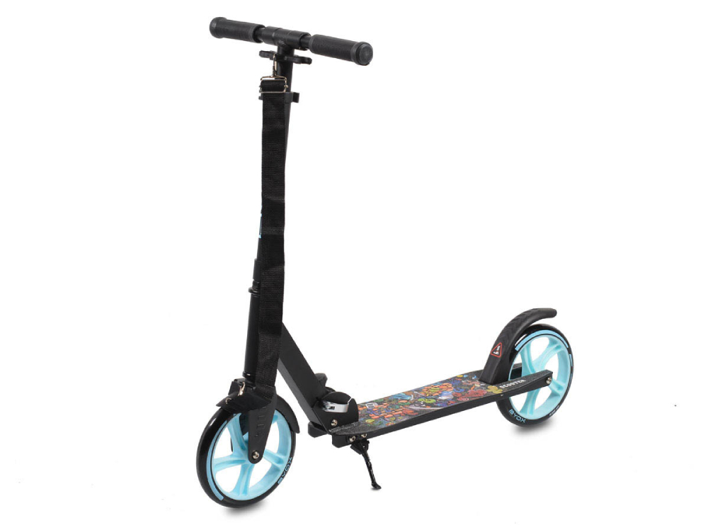 Byox Aluminum Foldable Scooter Flurry in black color with blue details. Suitable for children from 10 years and a maximum weight of 100kg.